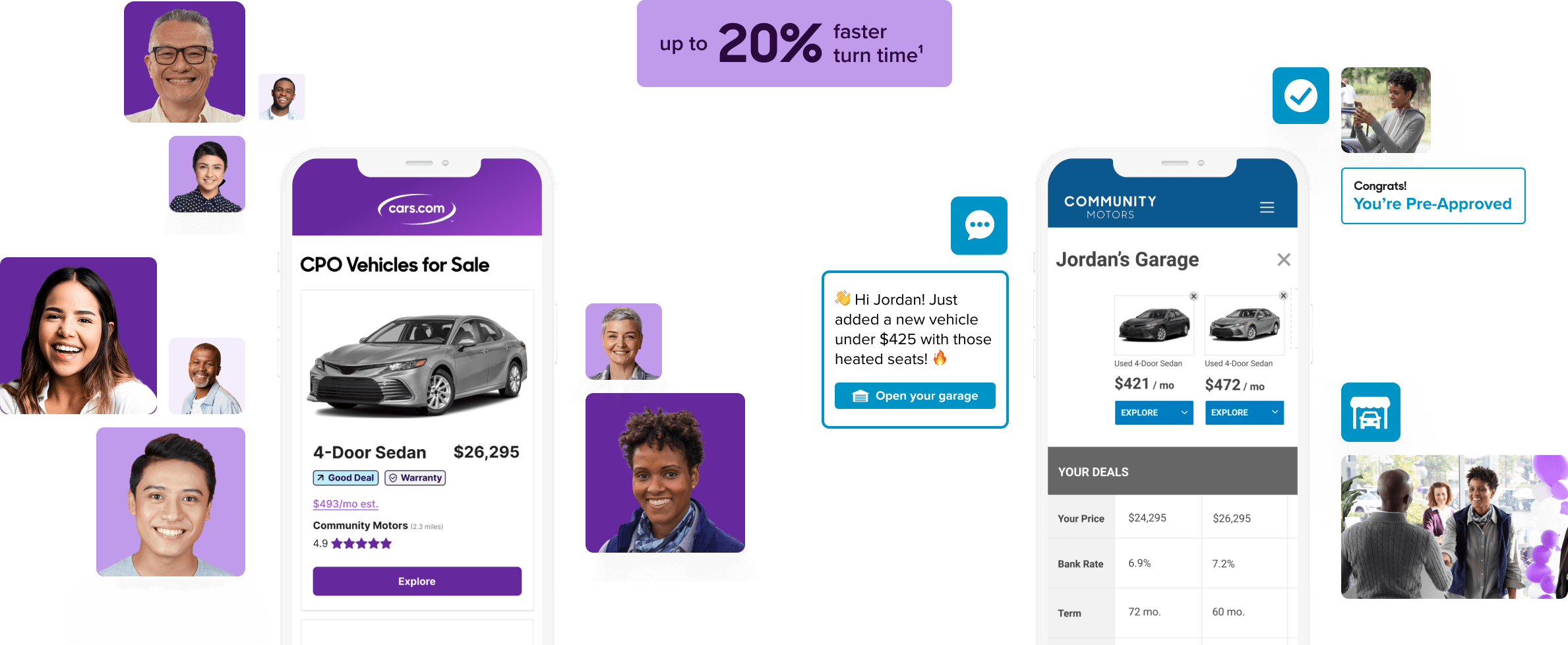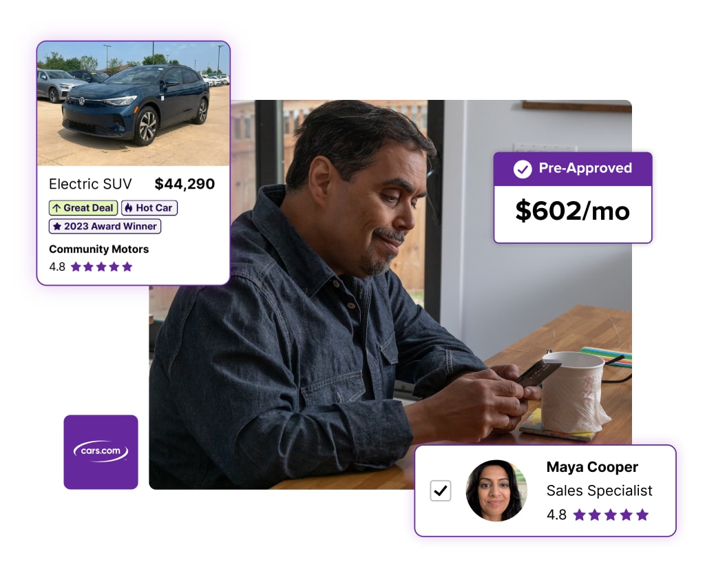 Nearly 30 million consumers come to Cars.com every month to find their next car, and you don’t need to drop prices or raise spend to stand out. Merchandise the full value of your inventory and your team’s reputation in front of local shoppers while they’re shopping to earn their business with trust.