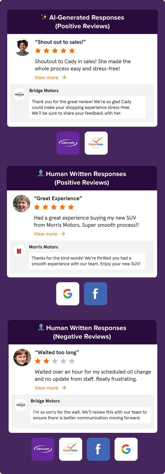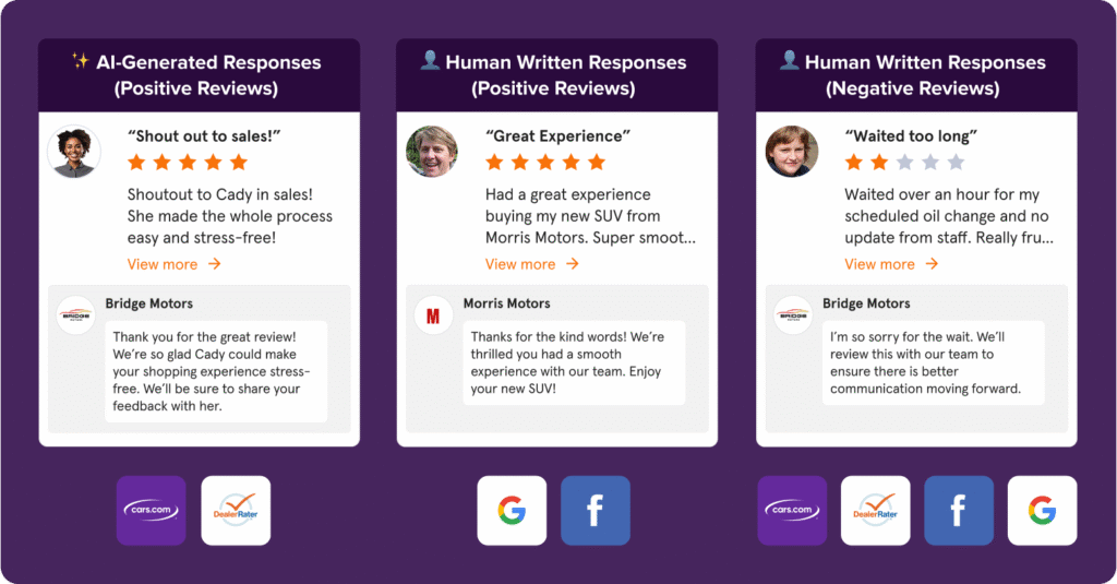 This balance allows you to scale responses confidently while staying closely involved in how your dealership appears to shoppers.