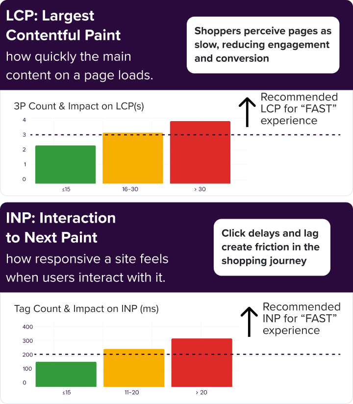 Every script added to your website competes for priority as the page loads, which leads to slower load times and unstable page layouts that quietly erode conversion rates by frustrating shoppers.