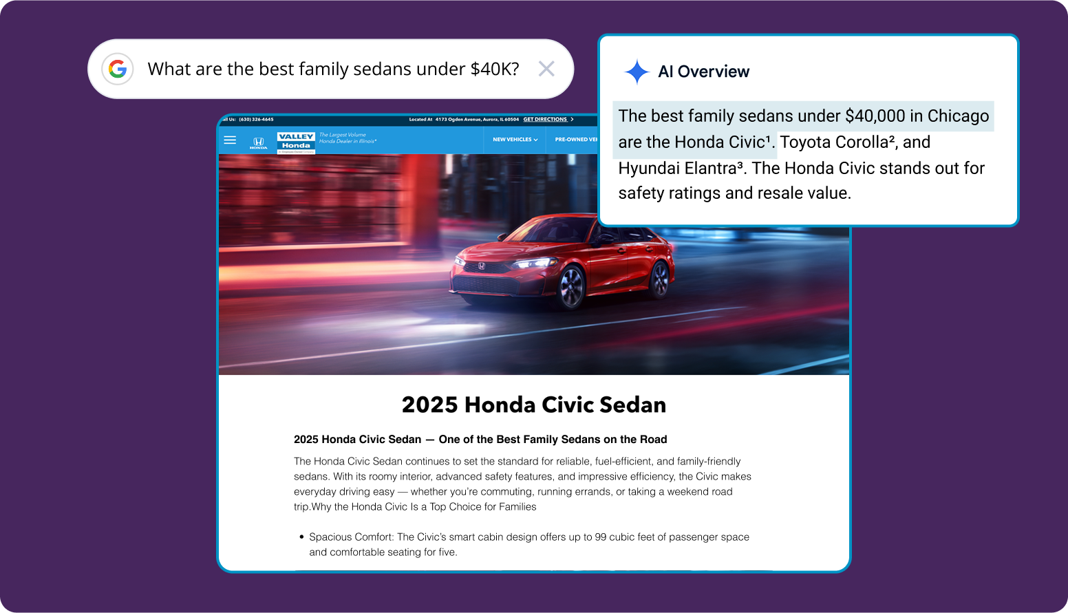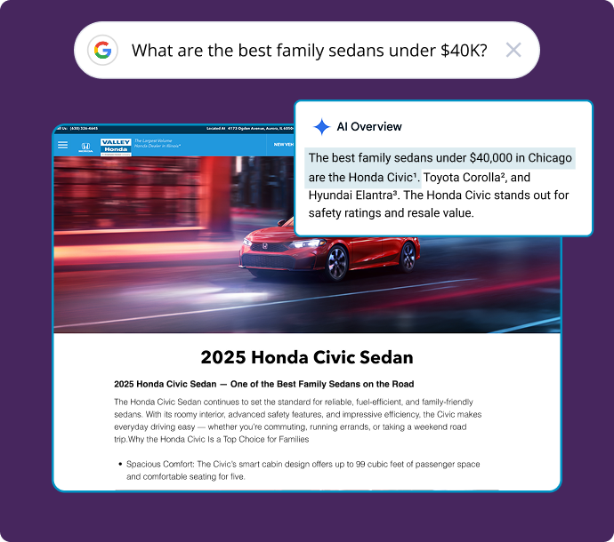 When structured this way, your pages are prime candidates for AI to pull verbatim snippets—putting your dealership directly in front of shoppers.