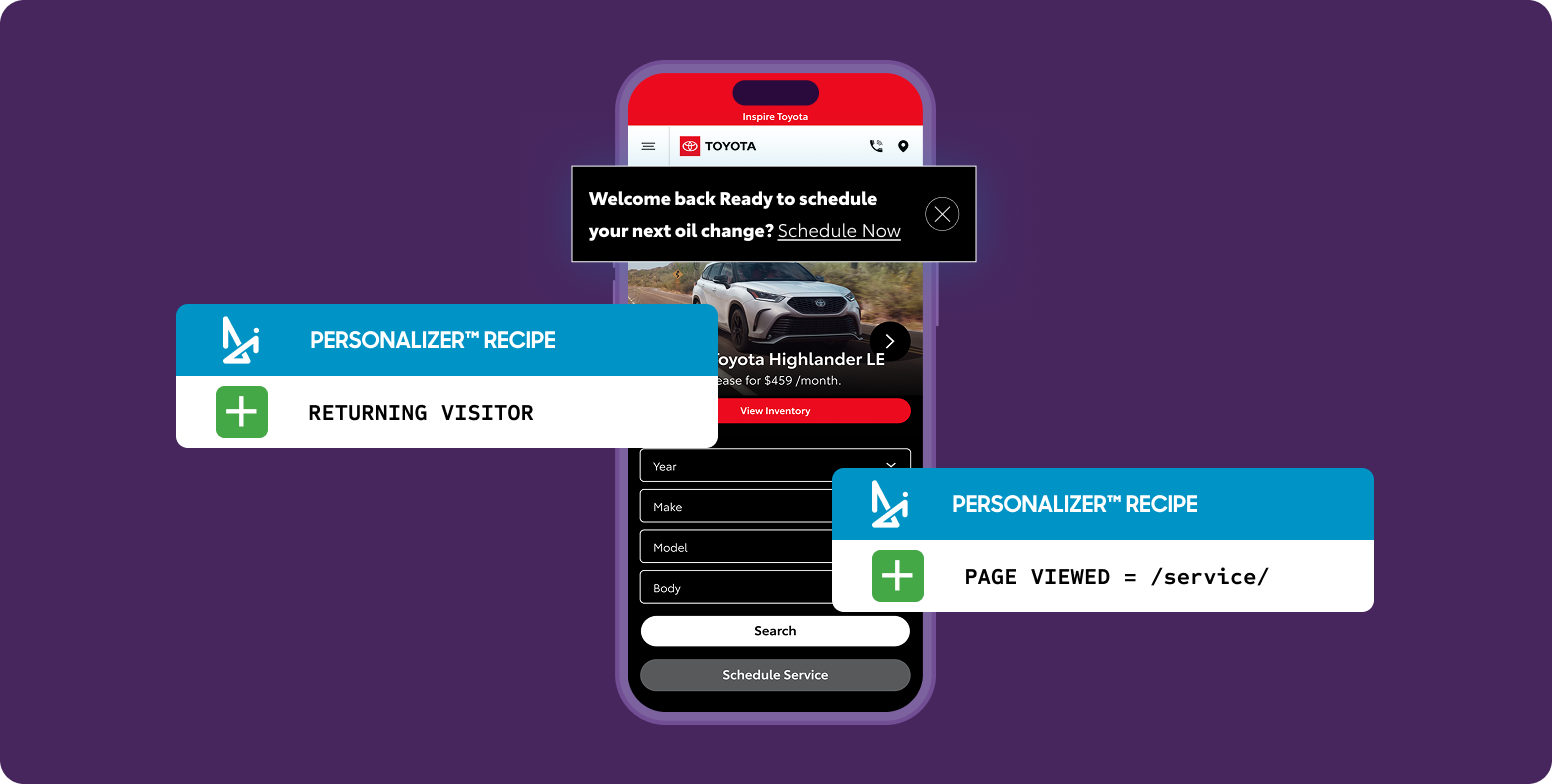 No two service customers are alike, so why give them all the same experience? With personalization, you can tailor service content to individual behaviors, vehicles, and even local conditions. This proves to customers that you understand their needs before they even pick up the phone or submit a service request.