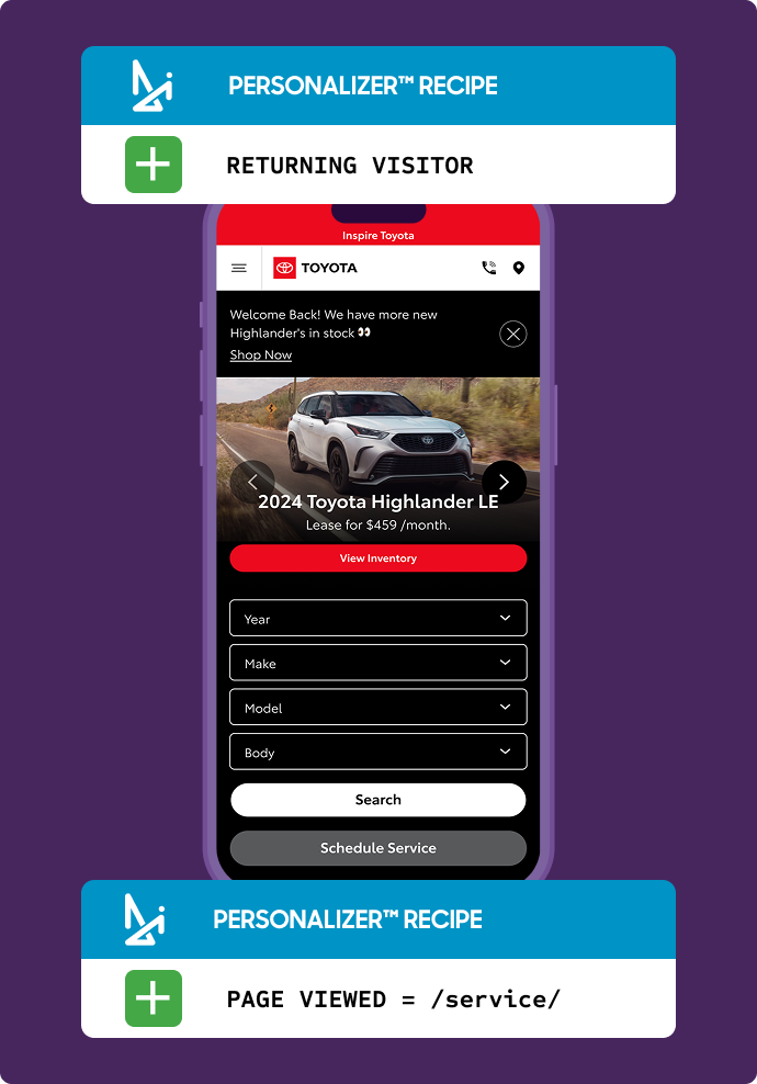 - Behavior-triggered personalization uses customer actions (or inactions) to deliver relevant messaging at exactly the right moment. When a return visitor lands on your site, greet them with “Welcome back! Ready to schedule your next oil change?” instead of generic homepage content. If someone viewed your service page, retarget them with “Book your brake inspection today! 10% off this month.” Personalization can be the difference between messages feeling like annoying ads and helpful reminders
